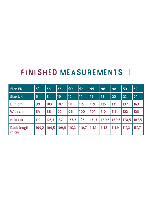 De naadwaarden zijn inbegrepen in de patroondelen.