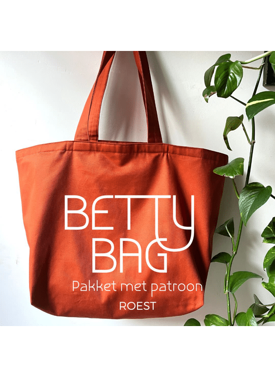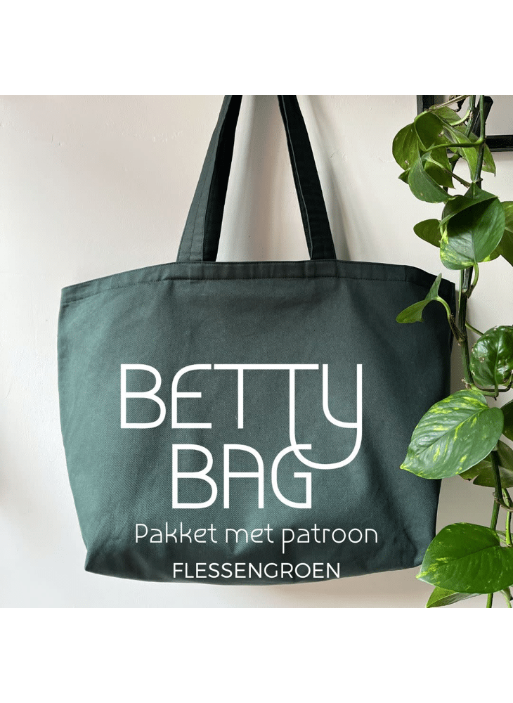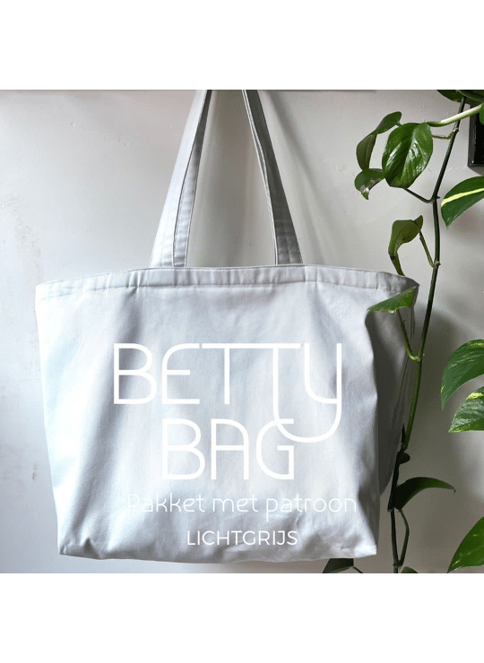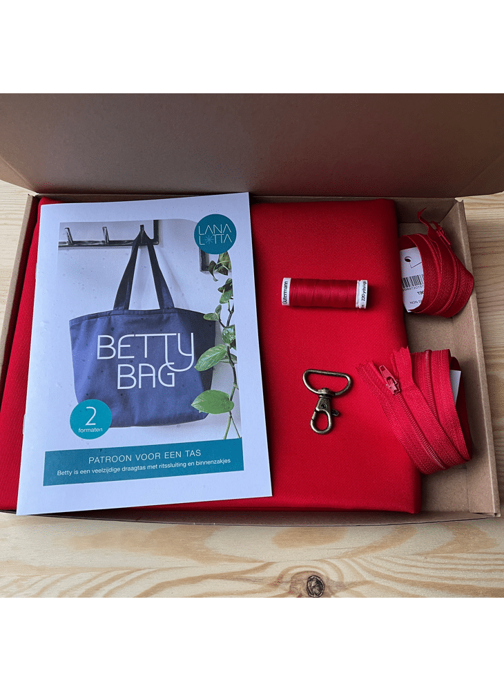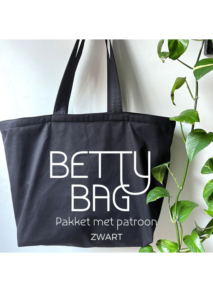 Maak het jezelf makkelijk met dit pakket: patroon + alles wat je nodig hebt om 1 Betty Bag te maken.De Betty bag is een handige draagtas met rits in 2 formaten.