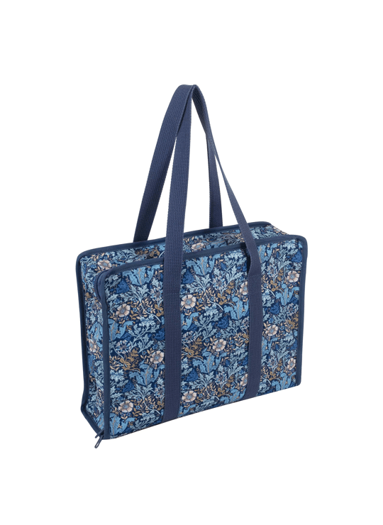 Zachte handwerktas met ritssluiting van katoenen stof met een klassiek bloemenprint, geïnspireerd op kunst en ambacht. Voorzien van transparante kunststof insteekvakken om projecten, patronen of materialen in op te bergen. Er is een ruim hoofdvak. Daarnaast zijn er elastische lussen om naaigerief, gereedschap en accessoires veilig op hun plaats te houden.