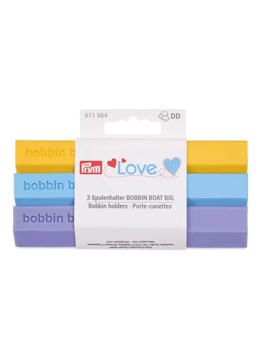 De bootvormige spoelenhouders van Prym zijn ideaal om je spoelen overzichtelijk te ordenen en op te bergen. Elke flexibele Bobbin Boat spoelenhouder biedt ruimte voor 10 spoelen van kunststof of metaal. 1 set met 3 verschillende kleuren: geel, blauw en paars.