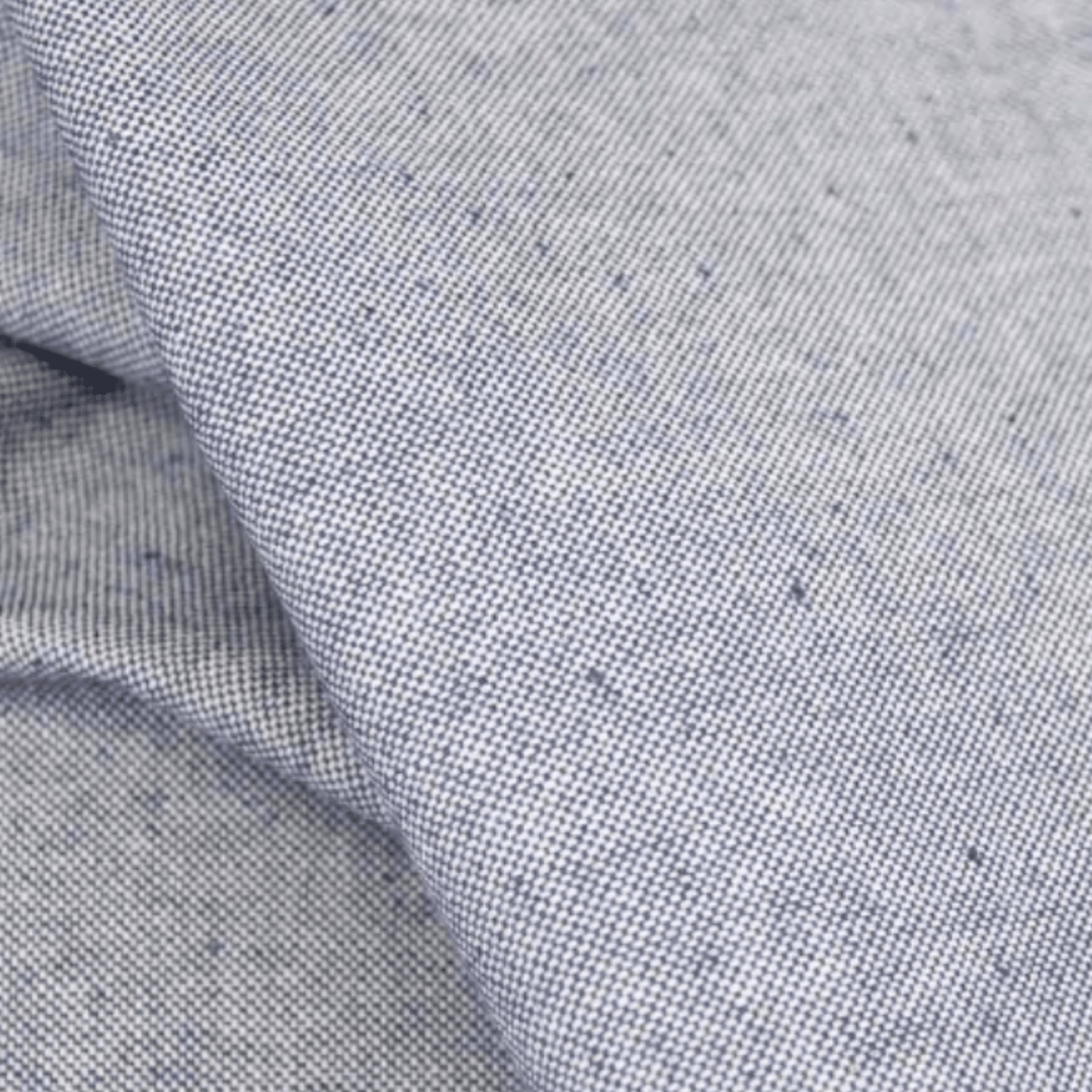 Zachte soepele canvas uit gerecycleerd materiaal. Canvas stof met chambray-effect, dat lijkt op denim, maar veel dunner is.