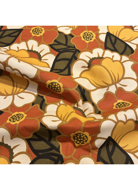 Mooie canvas met oranje retro bloemenprint.