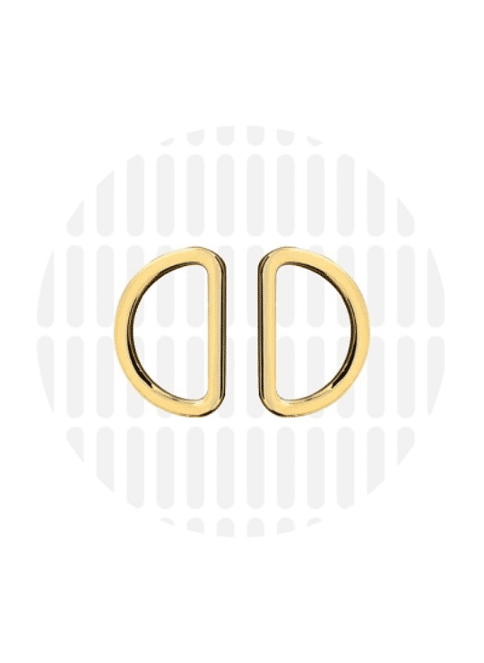 Set van 2 massief gegoten D-ringen in draad, ideaal voor bevestiging van hengsel, tassenband of leren riem, met of zonder musketon. Kleur: goud.
