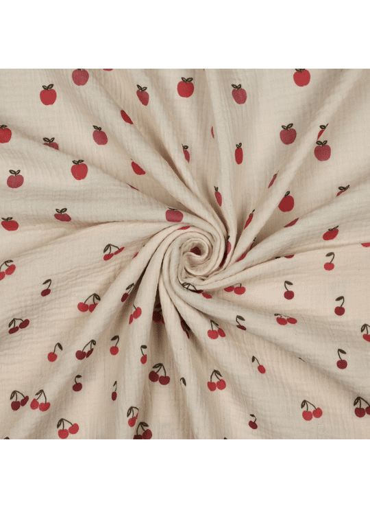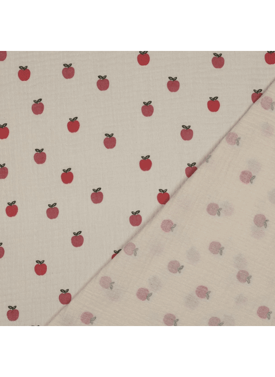 Double gauze, ecru met appels print.
