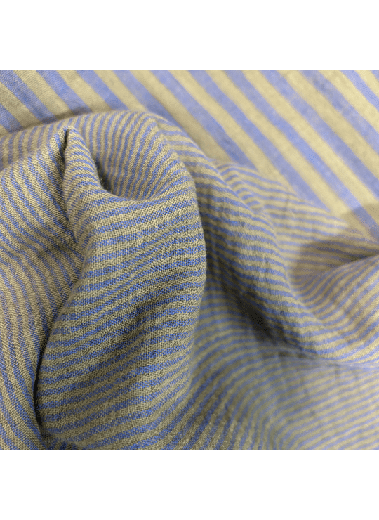 Prachtige double gauze met strepen aan beide kanten: bredere strepen aan de ene kant, smallere aan de andere kant.