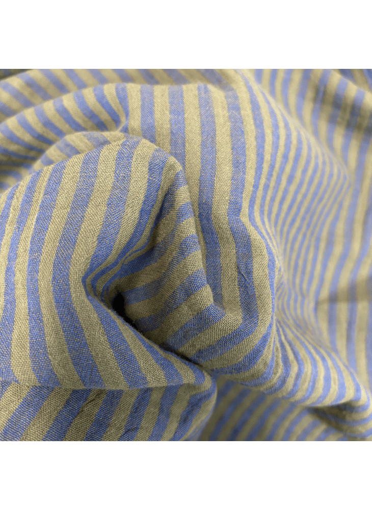 Prachtige double gauze met strepen aan beide kanten: bredere strepen aan de ene kant, smallere aan de andere kant.