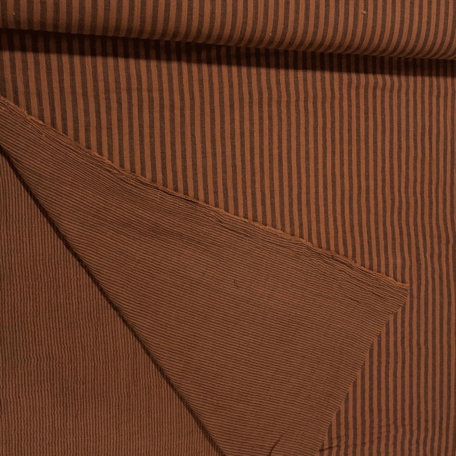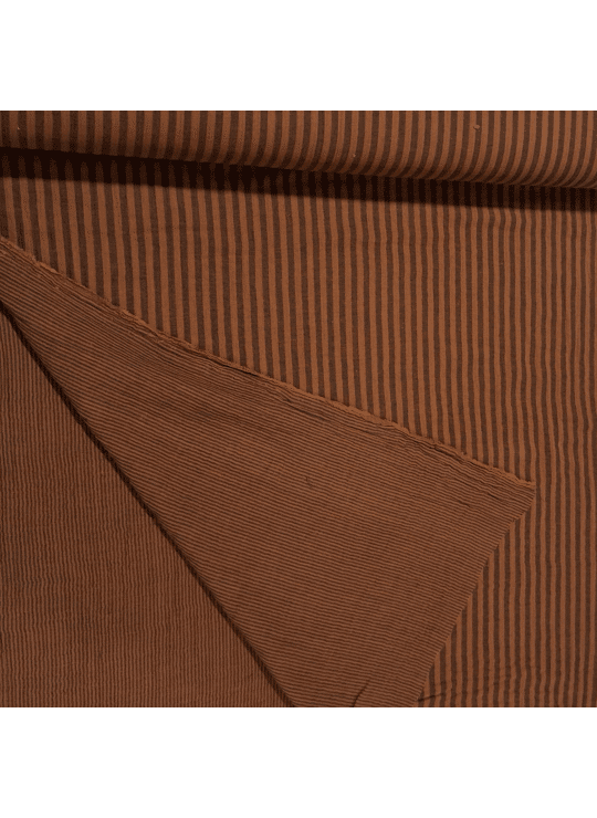Prachtige double gauze met strepen aan beide kanten: bredere strepen aan de ene kant, smallere aan de andere kant.