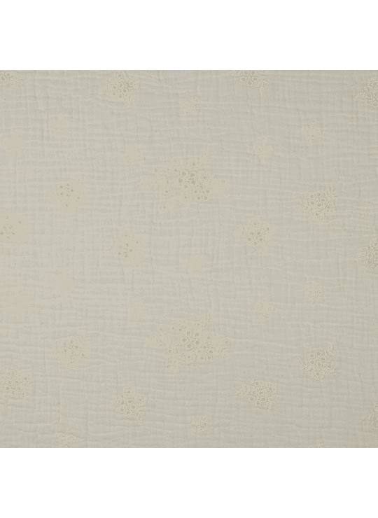 Ecru double gauze met geborduurde bloemen.