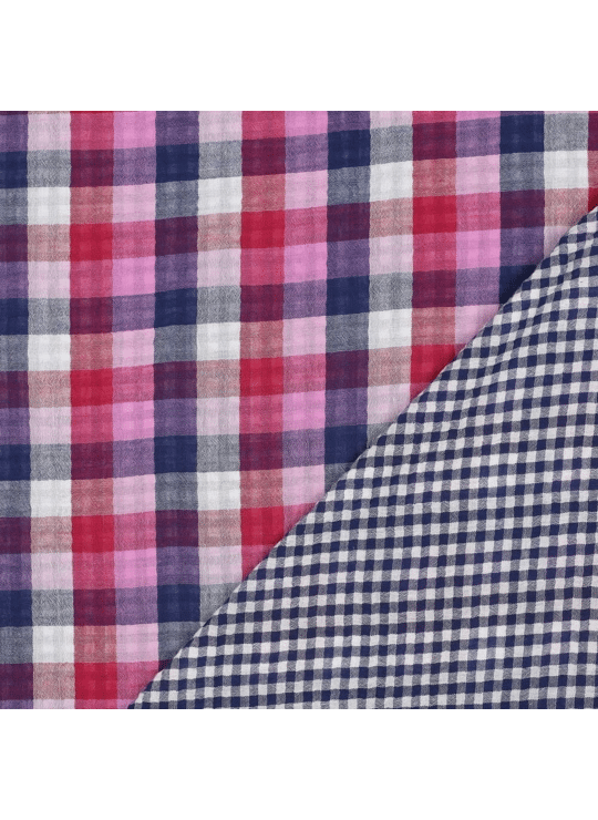 - Product: Lila/Marine | Double sided checks | Double gauze
