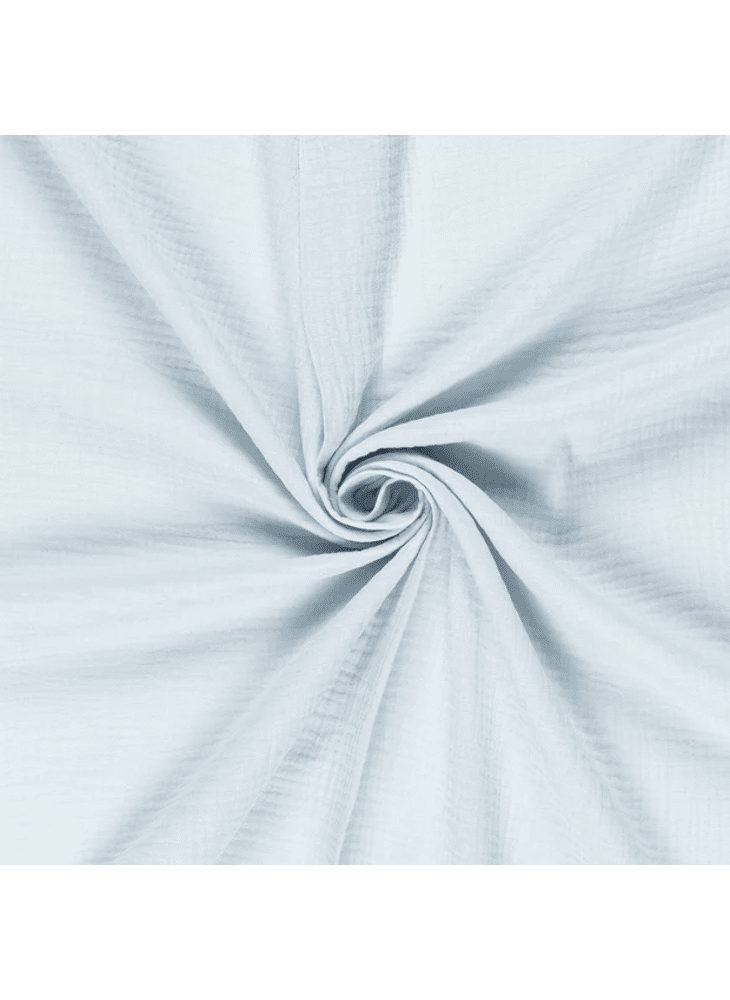 Double gauze is een lichte, ademende stof die bestaat uit twee lagen dunne, losjes geweven katoen die op een subtiele manier met elkaar zijn verbonden. De lagen zijn met kleine onzichtbare steken aan elkaar bevestigd, waardoor de stof luchtig en zacht blijft, maar toch stevigheid biedt. Double gauze is populair vanwege het comfortabele en natuurlijke gevoel, ideaal voor kleding, babyaccessoires en decoratieve projecten. Het materiaal absorbeert goed, ademt uitstekend en heeft een ontspannen, enigszins kreukelige uitstraling, wat bijdraagt aan de charme ervan.