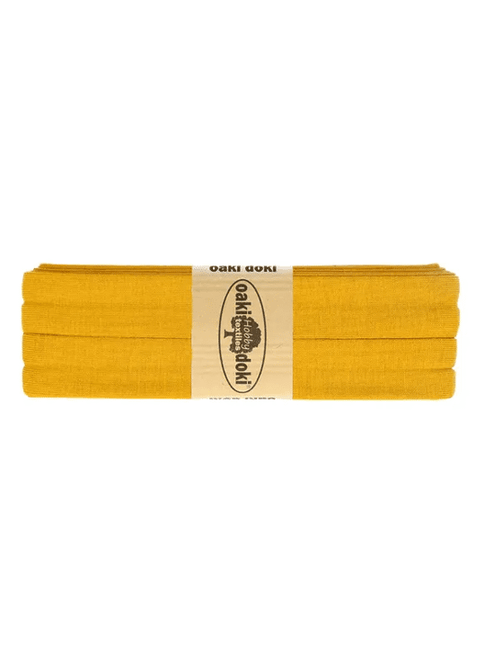 Zachte elastische biais, voorgevouwen. 95% viscose, 5% elasthan. Per pakje van 3 meter.. 2 centimeter breed