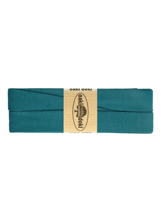 Zachte elastische biais, voorgevouwen. 95% viscose, 5% elasthan. Per pakje van 3 meter.. 2 centimeter breed