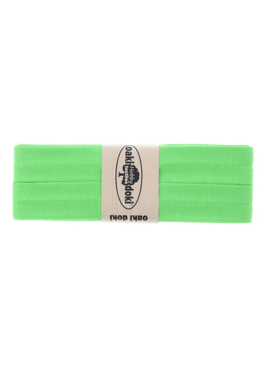 Zachte elastische biais, voorgevouwen. 95% viscose, 5% elasthan. Per pakje van 3 meter.. 2 centimeter breed