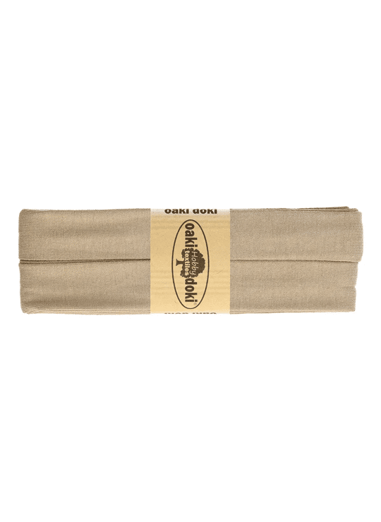 Zachte elastische biais, voorgevouwen. 95% viscose, 5% elasthan. Per pakje van 3 meter.. 2 centimeter breed