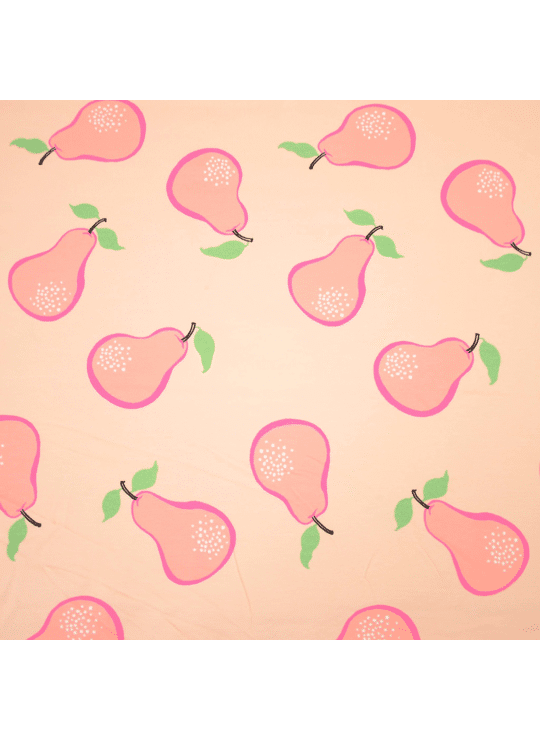 Soepele french terry met een zomerse print van peren. Ideaal voor een jurk of een trui