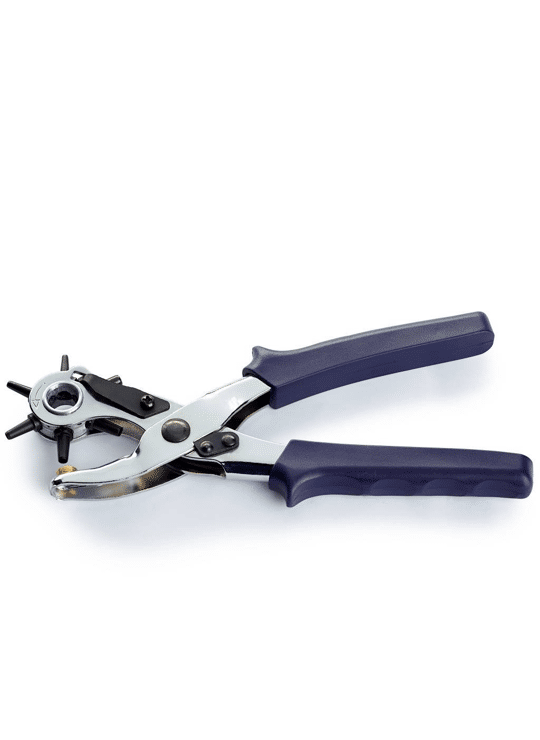 Gaatjestang voor stof, leer, papier... 6 verschillende maten van gaatjes 2,5 mm, 3,0 mm, 3,5 mm, 4 mm, 4,5 mm, 5 mm.
