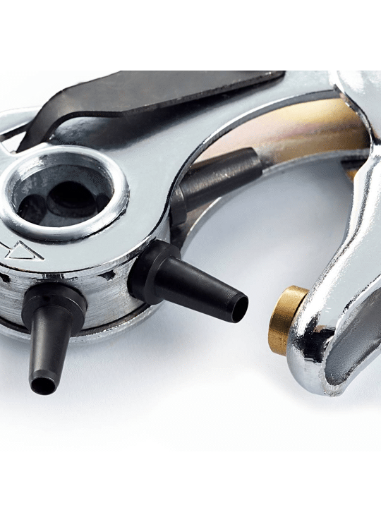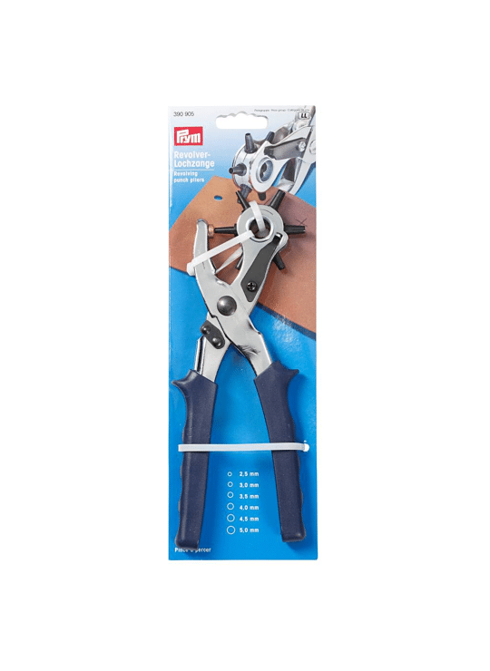 Een absolute allrounder is de stabiele revolverpons van Prym, omdat deze niet alleen geschikt is voor het stansen van textiel of leer, maar ook perfect kan worden gebruikt voor ambachtelijke materialen zoals papier, folie en nog veel meer. De ponstang ponst 6 verschillende gatgroottes van 2,5 mm tot 5 mm. Een vergrendelingsbout houdt de draaikop op zijn plaats.