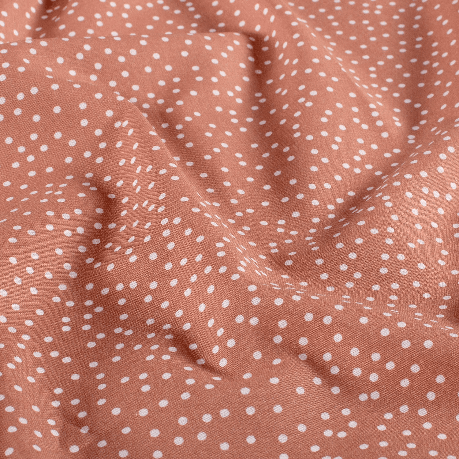 Deze poederbruine katoen heeft stippen in gebroken wit.
