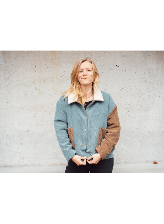 Lea is een eenvoudig naaipatroon voor een manteltje/jas met knoopjes, opgestikte zakken, kraagje en afhangende schouders. Door de wijde pasvorm en rechte zijnaden, oogt het wat stoerder en meer casual.