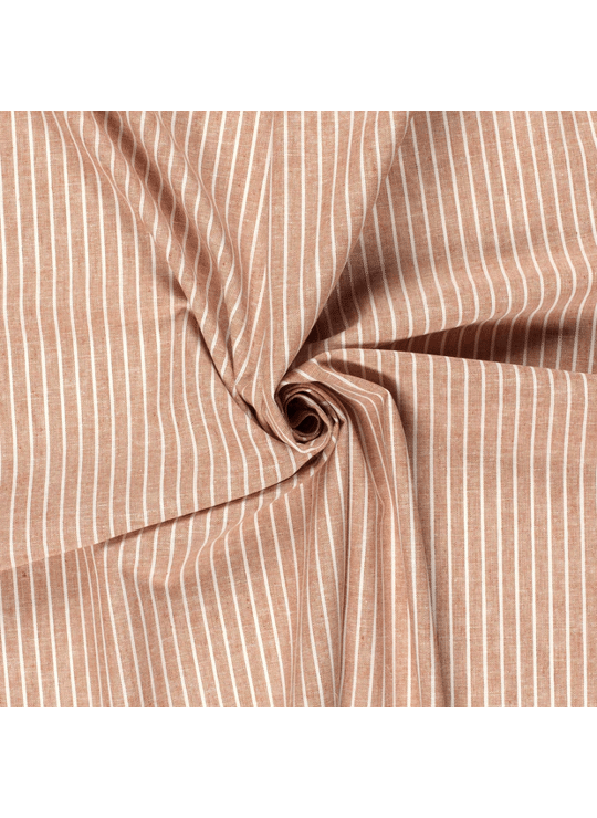 Lichtroest melée met witte streep | Linnen-katoen mix