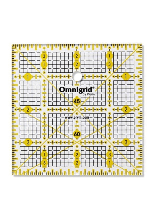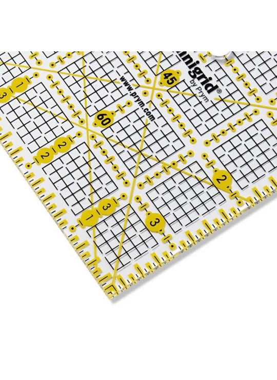 De Prym Omnigrid universele liniaal met inchschaal is een betrouwbaar en essentieel meetgereedschap bij patchwork, quilten, naaien en overige hobby’s. Ideaal voor het nauwkeurig snijden van uiteenlopende figuren, zoals vierkanten, rechthoeken, driehoeken, ruiten of diagonale stroken. De liniaal is gemaakt van dikke en robuuste transparante kunststof, zodat hij veilig te gebruiken is in combinatie met een hobby- en rolmes. De zwarte en gele rasteropdruk maken exact markeren mogelijk op zowel lichte als donkere ondergrond. De precieze opdruk van de markeringen en maatstrepen voorkomt optische vervorming. Aan de hand van het ronde gaatje is de liniaal netjes aan de wand te hangen.
