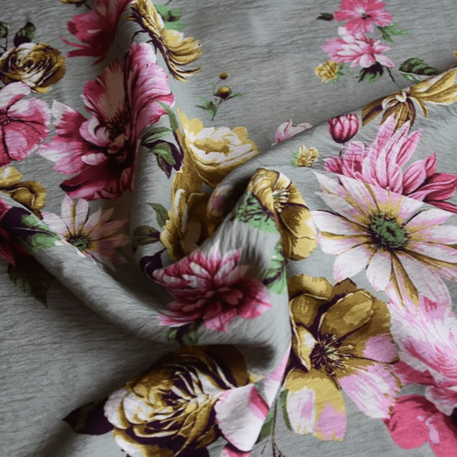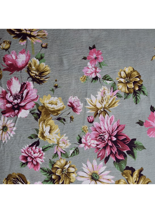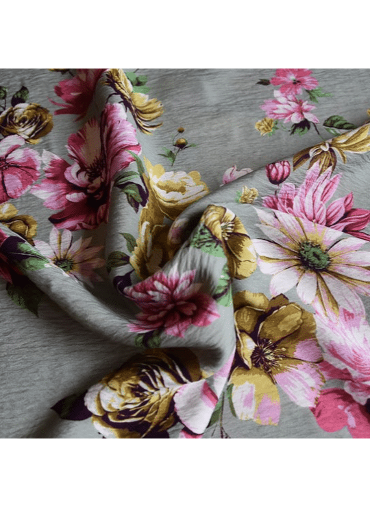 Soepele, muntgroene viscose met een beetje textuur en grote bloemenprint.