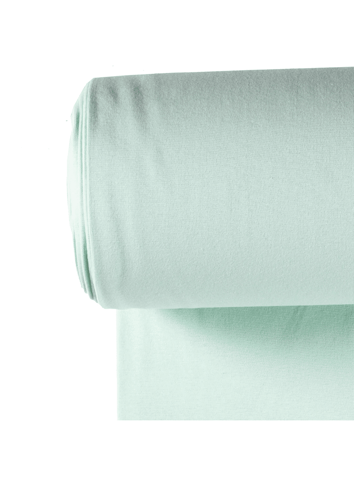 Muntkleurige boordstof. Wordt gebruikt voor het afwerken van boorden in sweater, jogging, French Terry, tricot.