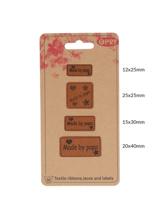 Je kan de labels vast naaien of vastkleven met textiellijm.