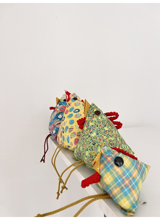 Haal de lente in huis met deze vrolijke kippenbende. Ook leuke decoratie voor pasen.Inclusief alle materiaal + werkbeschrijving voor het maken van deze kippen.Exclusief vulling.