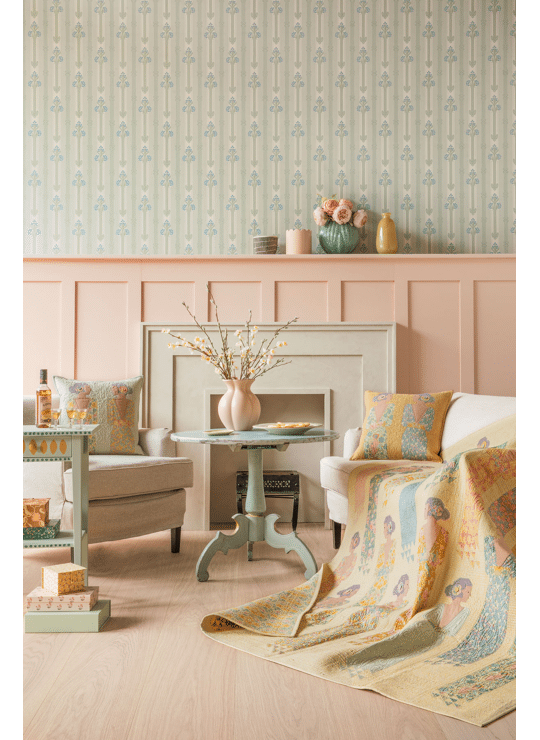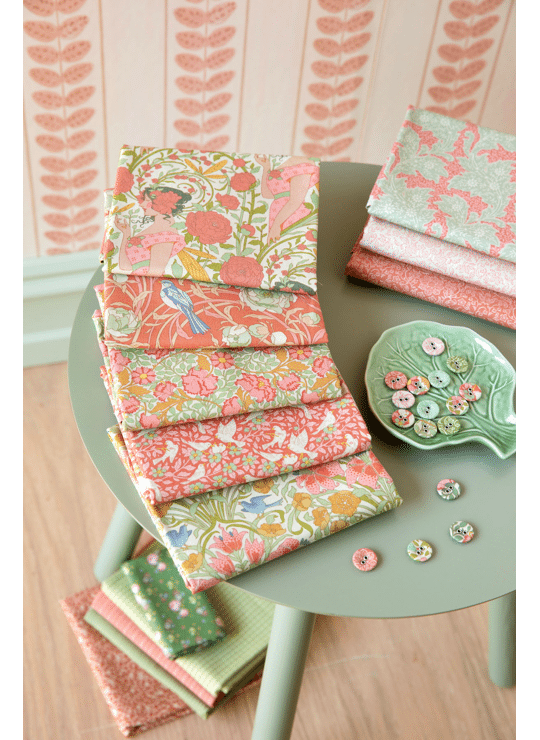 De collectie is uitgevoerd in lichte, zachte pasteltinten met een subtiel aquareleffect. Deze kleuren maken de stoffen makkelijk te combineren en perfect voor voorjaars- en zomerquilts, kussens en andere patchworkprojecten.