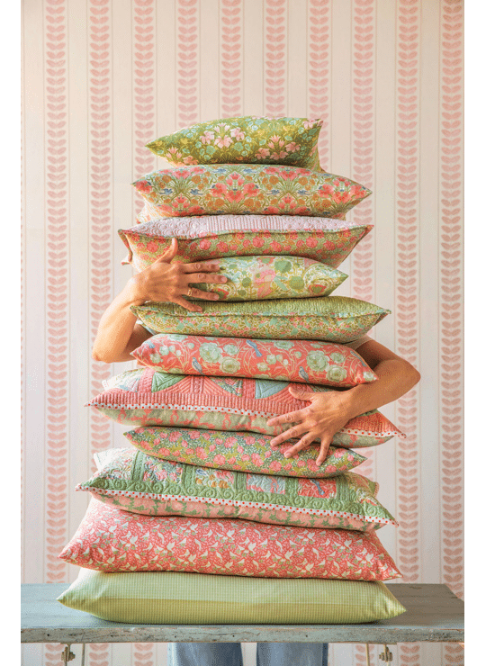 De Songbird-collectie van Tilda is geïnspireerd op een reis naar Venetië en de sierlijke Art Nouveau-stijl. In de stoffen zie je zachte bloemen, vogels, vlinders en fijne ornamenten terug, allemaal met de hand getekend.
