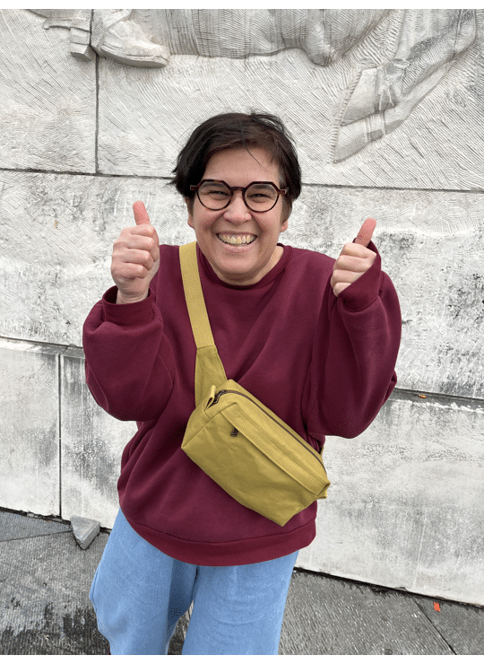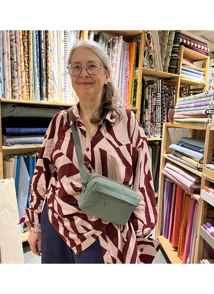 Polly, een compact en stijlvol cross-body tasje. Ze heeft één handige maat en een strakke, rechthoekige vorm waardoor alles binnenin mooi overzichtelijk blijft. Ideaal voor elke dag, en leuk om te naaien — eenvoudig of met extra zakjes, jij kiest.