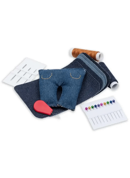 - 1 x speldenkussen in de vorm van een spijkerbroek