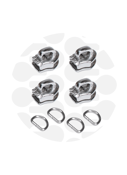 Set van 4 “Classic” trekkers voor #5 nylon ritsen. Eenvoudig, stijlvol en tijdloos. Schuiver met een mechanisme om de trekker te vervangen. Past op alle maat #5-ritsen van Zipper Zoo. In een pakje zitten vier schuivers en vier kleine D-ringen om eventueel zelf trekkers te maken en bevestigen.