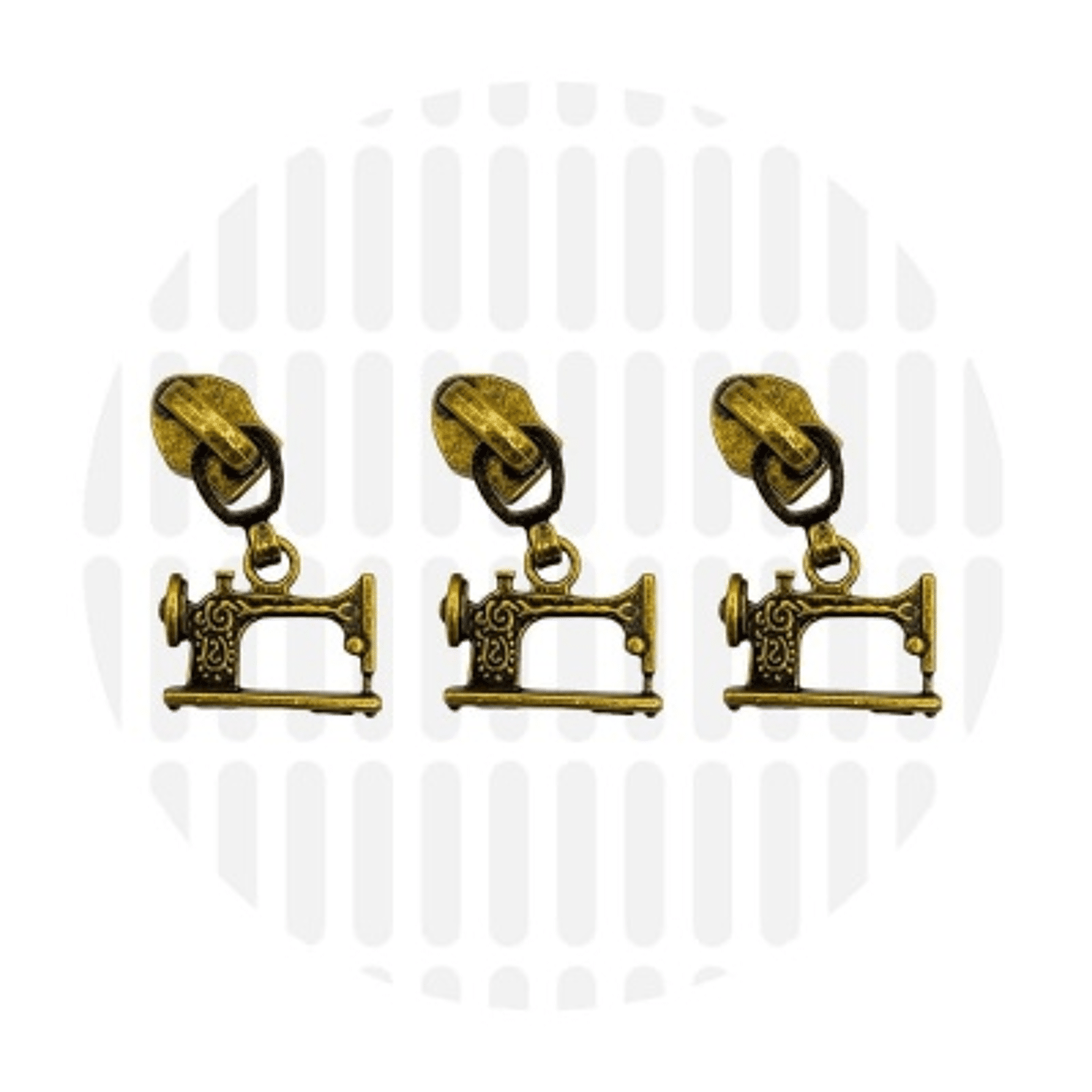 Set van 3 'Sewing Machine' zipper pulls, speciaal ontworpen voor spiraalrits #5. Ideaal voor tassen, etuis of accessoires met een naaiafwerking.