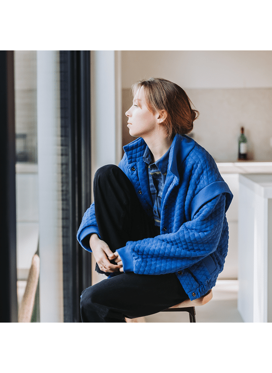 Deze gebreide stof heeft een piqué textuur en is gevoerd/gequilt, geschikt voor stijlvolle jassen en truien.