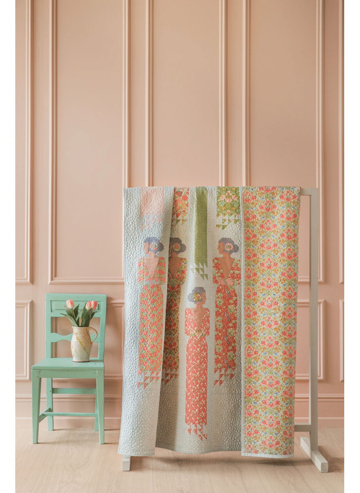 Deze prachtige quilt in zachte kleuren van dames in avondkledij behoort tot de Songbird collectie van Tilda