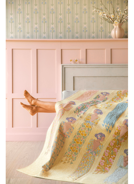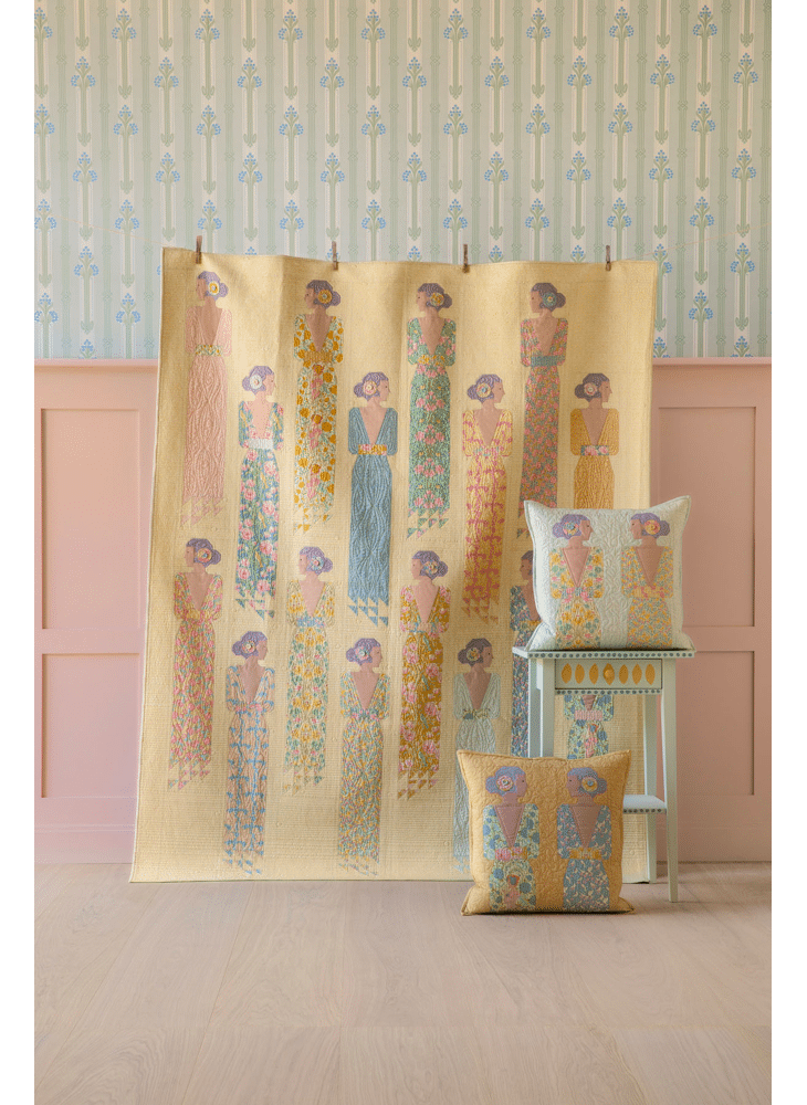 Deze prachtige quilt in zachte kleuren van dames in avondkledij behoort tot de Songbird collectie van Tilda