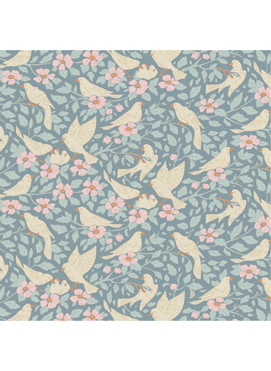 De Songbird-collectie van Tilda is geïnspireerd op een reis naar Venetië en de sierlijke Art Nouveau-stijl. In de stoffen zie je zachte bloemen, vogels, vlinders en fijne ornamenten terug, allemaal met de hand getekend.
