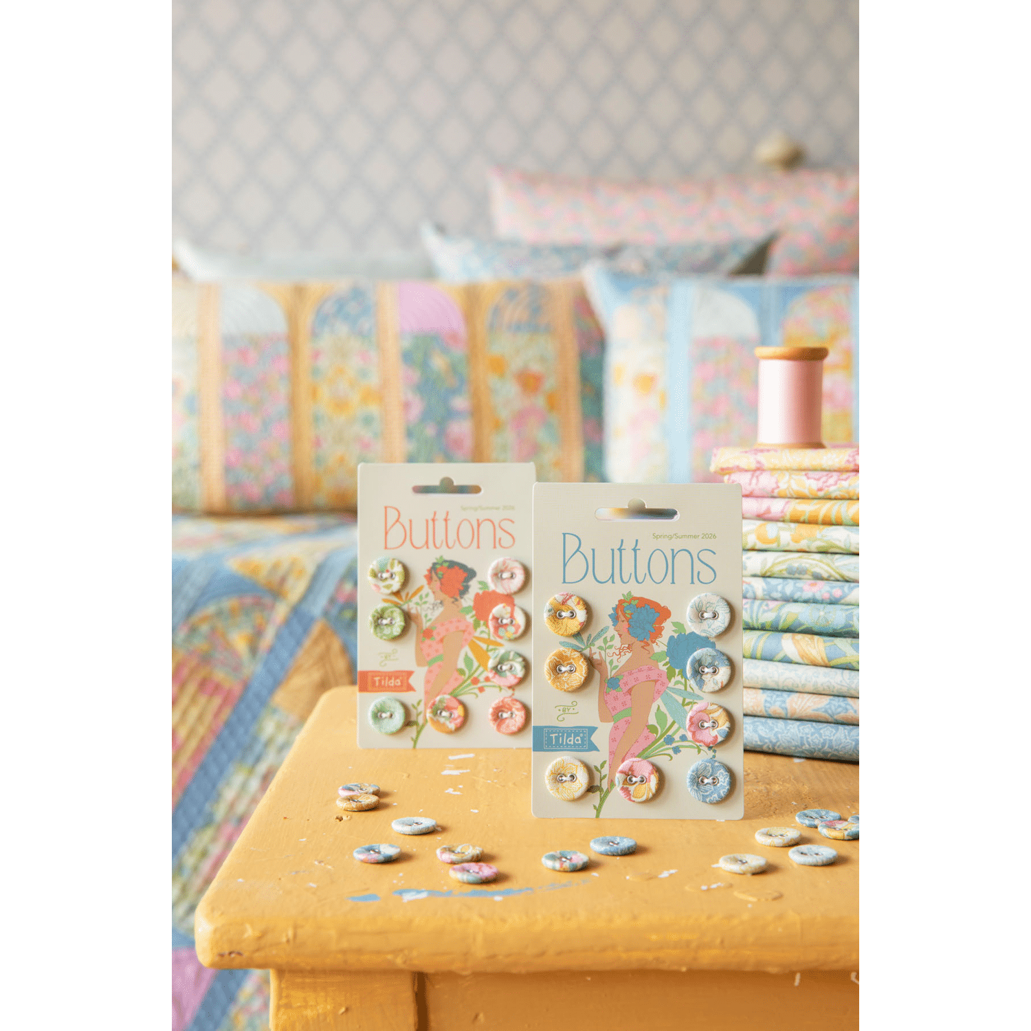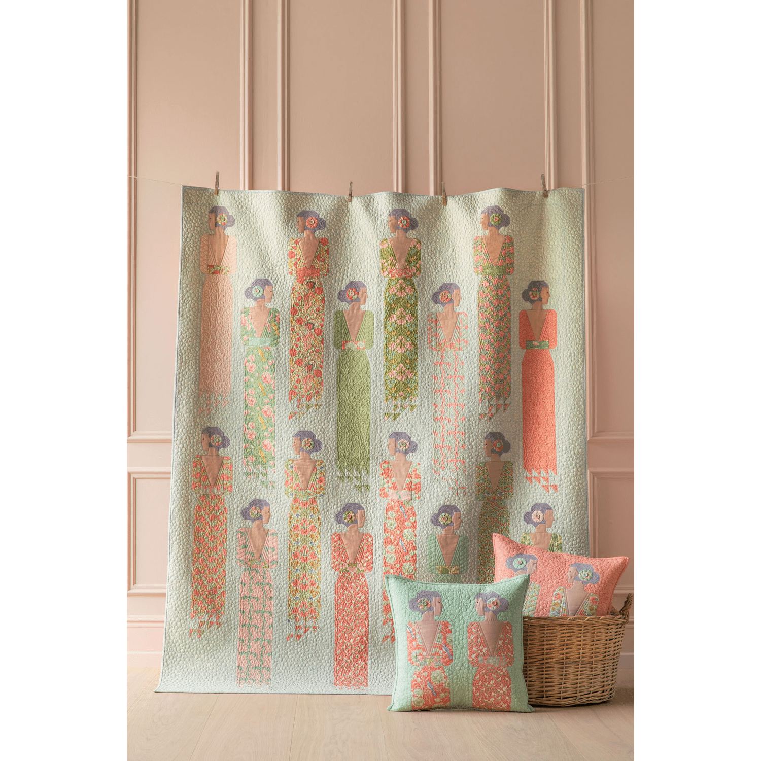 De collectie is uitgevoerd in lichte, zachte pasteltinten met een subtiel aquareleffect. Deze kleuren maken de stoffen makkelijk te combineren en perfect voor voorjaars- en zomerquilts, kussens en andere patchworkprojecten.