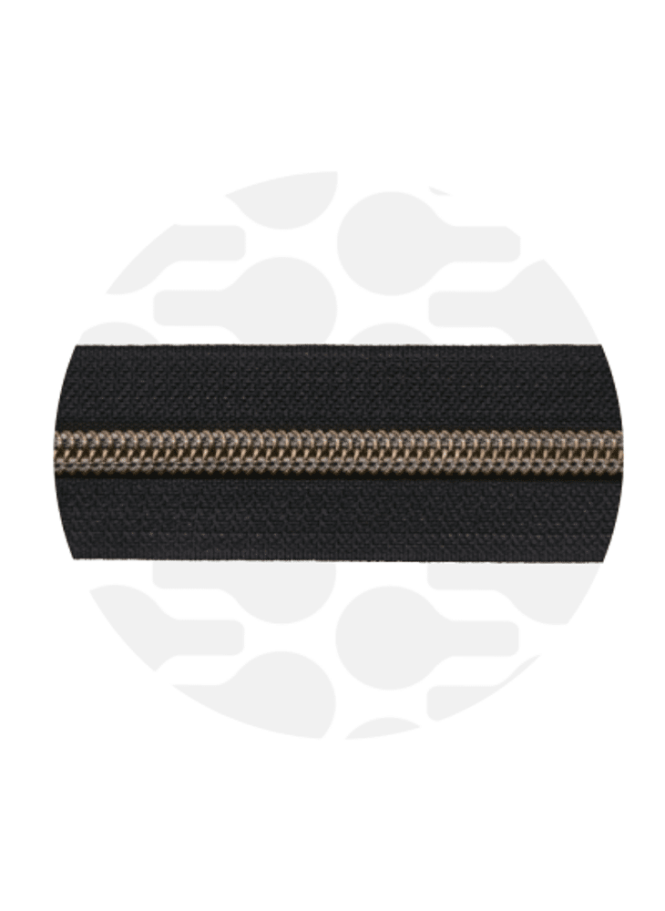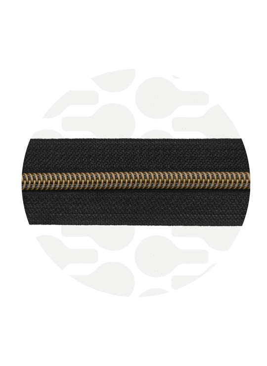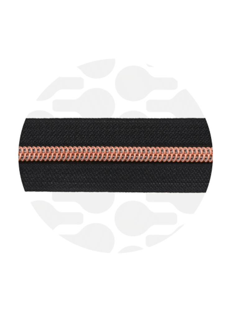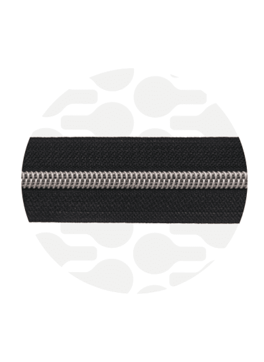 Doorlopende rits met nylon tanden en metalen uitstraling. Makkelijk te verwerken in een tas. Verpakt per 1 meter.