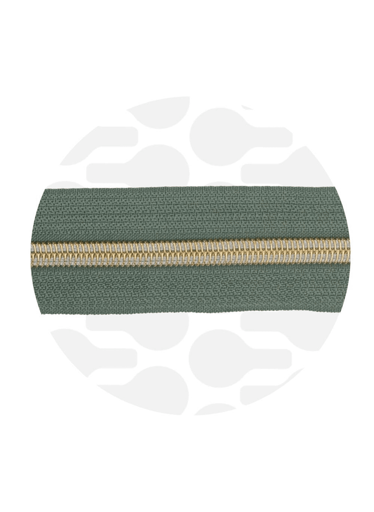 Doorlopende rits met nylon tanden en metalen uitstraling. Makkelijk te verwerken in een tas. Verpakt per 1 meter.