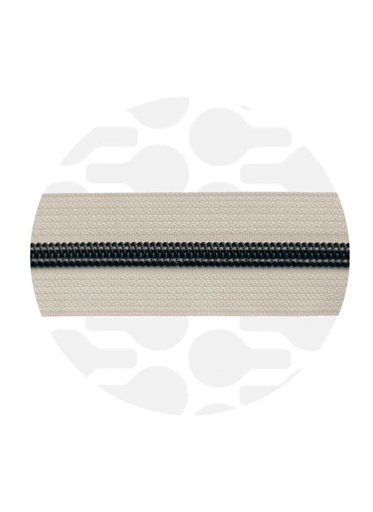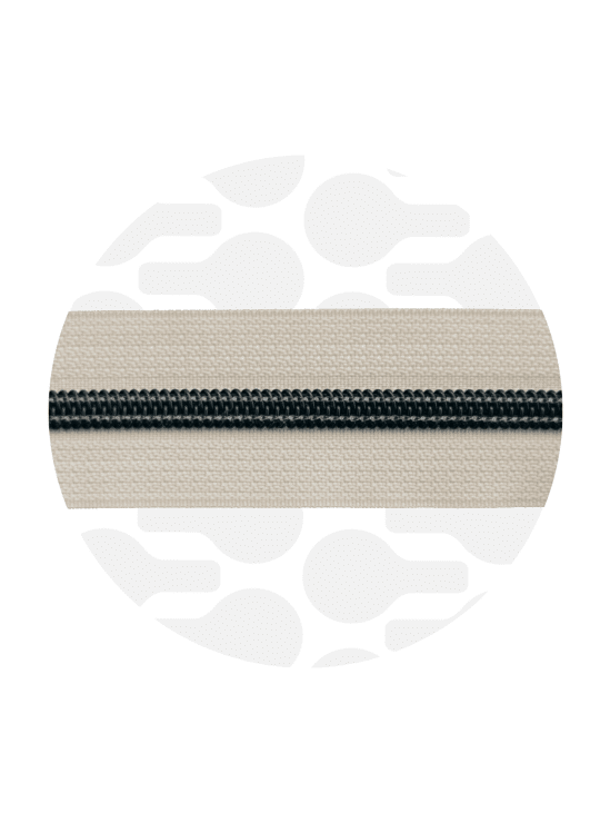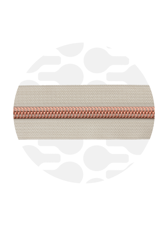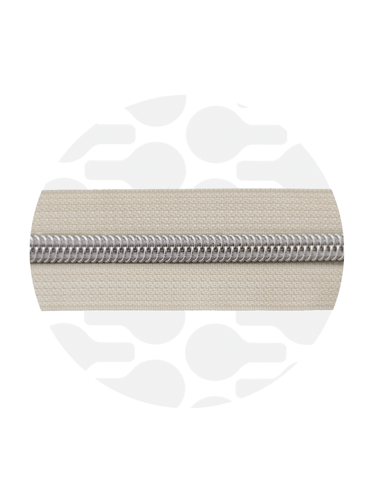 Doorlopende rits met nylon tanden en metalen uitstraling. Makkelijk te verwerken in een tas. Verpakt per 1 meter.