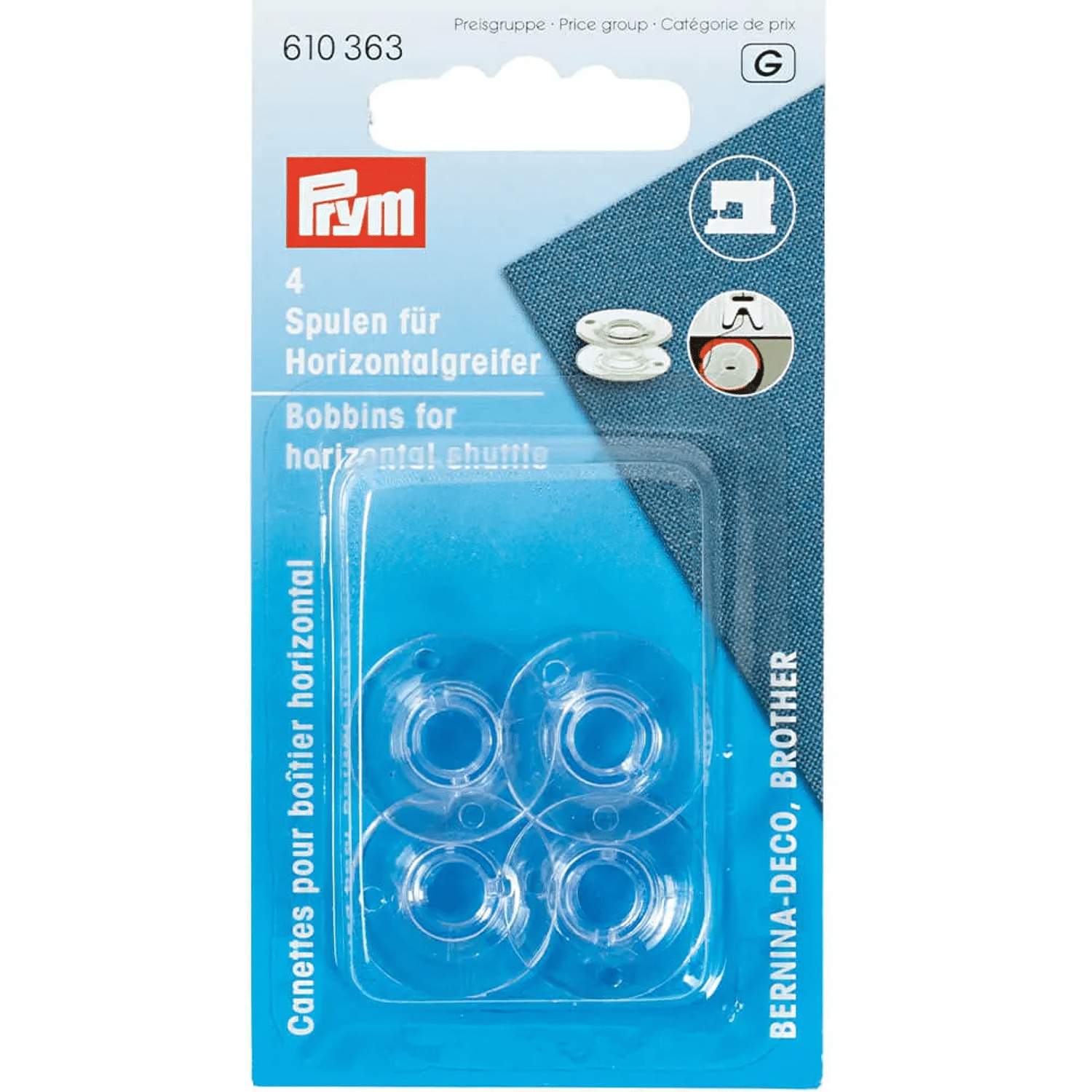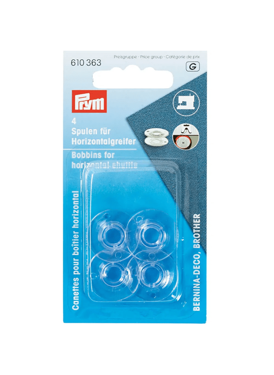 Deze naaimachinespoelen van Prym zijn gemaakt van transparant kunststof. Ze zijn 9,2mm hoog en 21,2mm breed en zijn geschikt voor onder andere Bernina Deco en Brother Star naaimachines. Door het doorzichtige materiaal houdt u een goed overzicht van de garenkleur en de resterende hoeveelheid garen op de spoel.