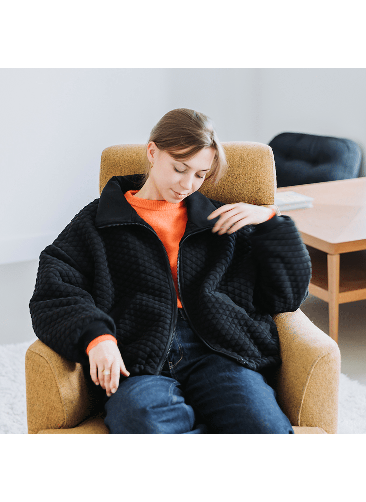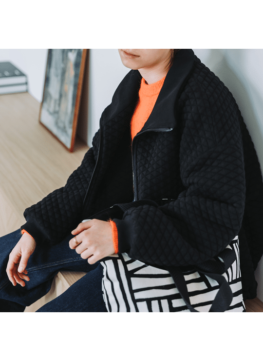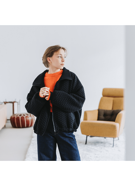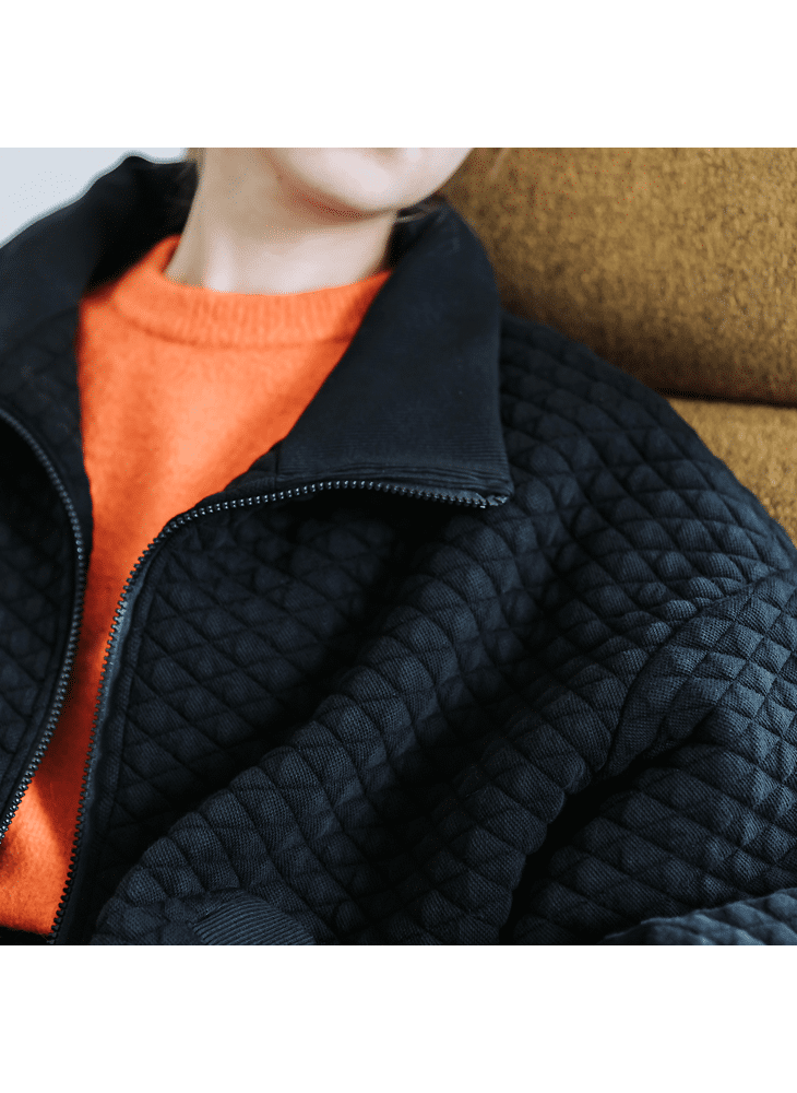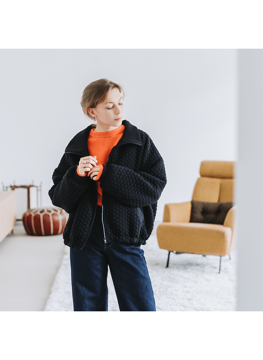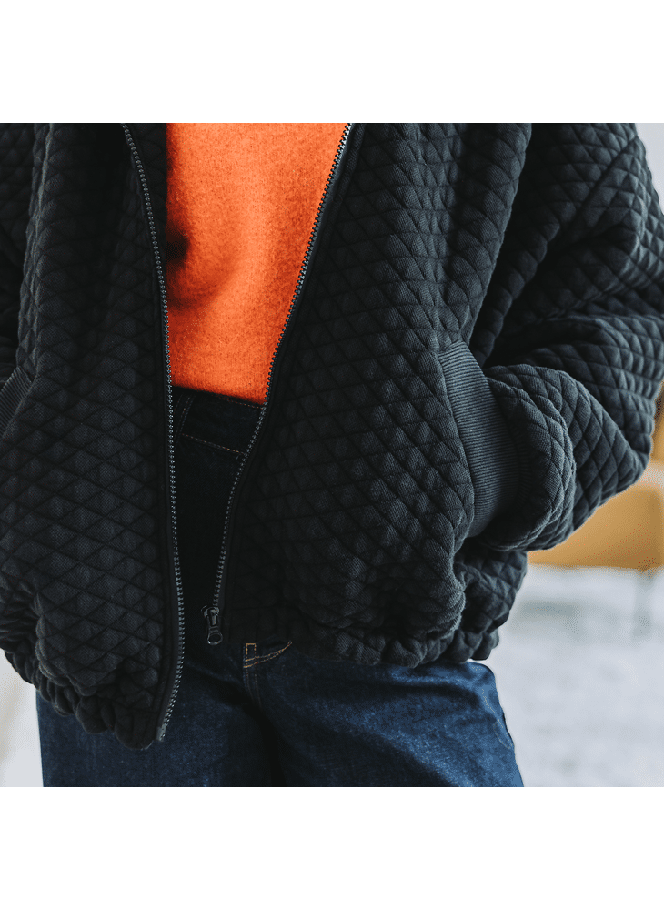 Deze gebreide stof heeft een piqué textuur en is gevoerd/gequilt, geschikt voor stijlvolle jassen en truien.
