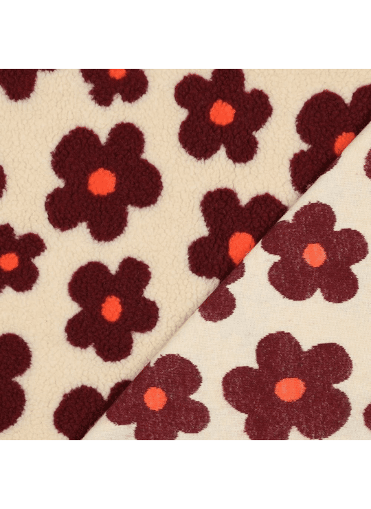 - Product: Bloemen | Beige/Wijnrood | Teddy Fleece