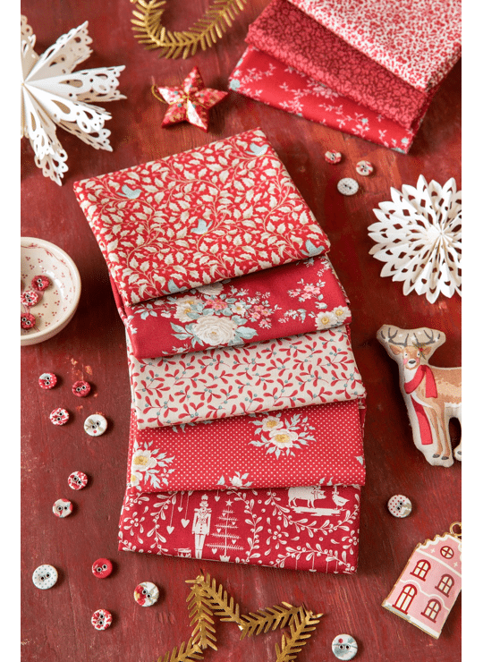 Deze prachtige patchworkstoffen maken deel uit van de Merry Little Christmas collectie van Tilda Fabrics, Een sfeervolle kerstcollectie vol vintage charme, warme rood- en groentinten en een vleugje Scandinavische gezelligheid.