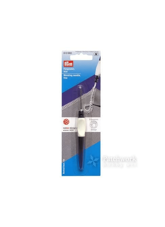Dit onmisbare instrument is ideaal voor het vastzetten van coverlocksteken en overlocksteken. De Prym-herstelnaald biedt een breed scala aan toepassingen, waaronder het opnemen en repareren van steken, inrijgen van draden en fungeert als draadgeleider in overlocknaaimachines. Deze handige tool maakt zelfs het repareren van kousen mogelijk. Draag hem gemakkelijk om je nek met een riem (riem niet inbegrepen), zodat hij altijd binnen handbereik is.