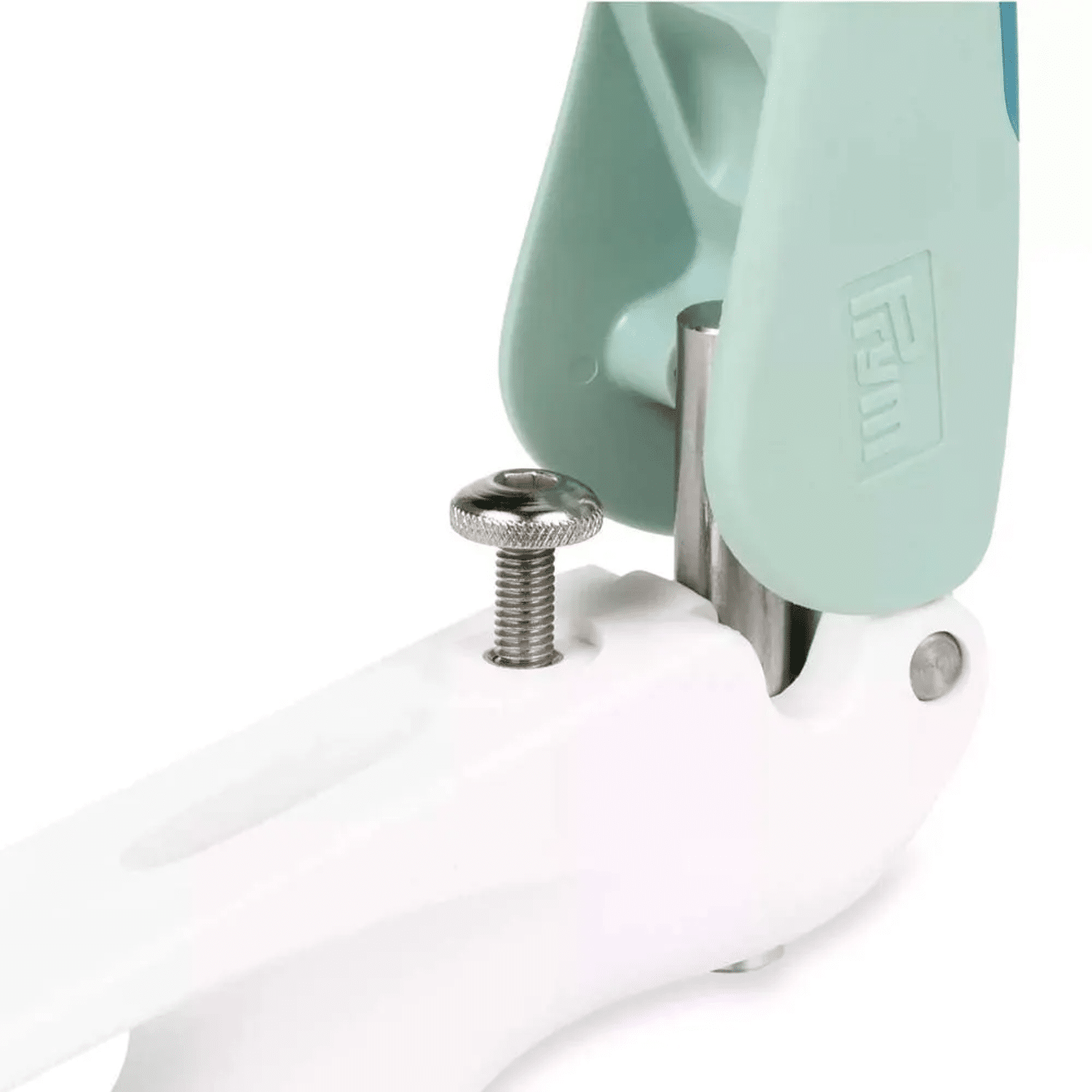 Met de instelbare schroef bepaal je zelf de juiste druk voor jouw stofdikte, terwijl de anti-slip voetjes zorgen dat de tool stevig blijft staan tijdens het werken.