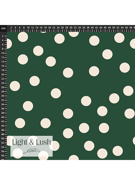 Groen met witte bollen. 1 bol is ongeveer 5 cm.